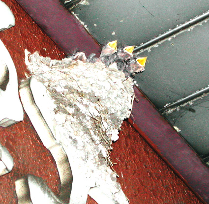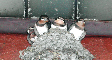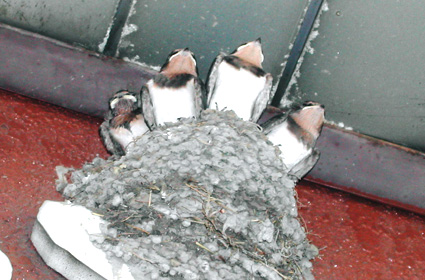 つばめの赤ちゃん達は親つばめが餌を口に運びに来るのを待っています。